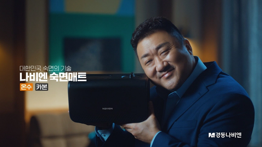 2023年,慶東納碧安韓國總部正式簽約馬東錫為品牌代言人,并于當年秋冬推出兩支廣告片:一支圍繞“冷凝ON AI熱水器”,一支則聚焦“舒眠床墊”。廣告中,他沒有冗長對白,只有幾句平實話語:“熱水,試試納碧安的技術吧?!? “要想睡得好,靠的不是偶然,是技術?!?/p>